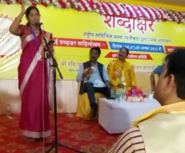 बिहार:जहानाबाद शहर के झरी साव लेन की रहने वाली एक कवयित्री,गजलकार और समाज सेविका सावित्री सुमन को चेन्नई में अयोजित शब्दाक्षर सेमिनार में अपनी सहभागिता निभायी। इनकी शानदार प्रस्तुति पर सभी लोग वाह-वाह करते रहे और तालियों की गड़गड़ाहट गुँजती रही । बता दें कि सावित्री सुमन जिला कला एवं सांस्कृतिक मंच के संयुक्त सचिव और राष्ट्रीय स्तर की साहित्यिक संस्था शब्दाक्षर की जिला साहित्य मंत्री भी हैं।