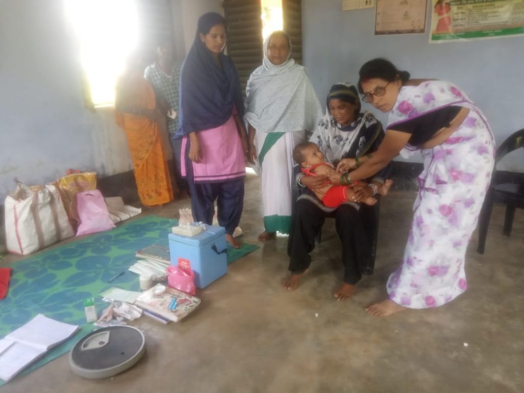 देवघर- पालोजोरी प्रखंड क्षेत्र के खागा थाना के अंतर्गत कसरायडीह पंचायत के आंगनबाड़ी केंद्र में गर्भवतीयों तथा बच्चों को सुई दिया गया. टीका एएनएम रेखा कुमारी और सहिया मुमताज बीबी तथा आंगनबाड़ी सेविका रेशमा खातून उपस्थित रहे. यहां बच्चों और गर्भवती महिलाओं को विशेष रुप से कई स्वास्थ्य संबंधित जानकारियां देते हुए बताया कि समय-समय पर बच्चे को टीका लगाना जरूरी है और समय-समय पर गर्भवती महिलाओं को चेकअप कराना जरूरी है। गर्भवती महिलाओं को लेकर विशेष रुप से ध्यान रखा जाए ताकि को किसी प्रकार की कोई असुविधा महसूस ना हो. एएनएम रेखा कुमारी ने बताया कि कसरायडिह आंगन बाड़ी केंद्र में शनिवार को पेंटा, आईपीवी, पीसीभी, एम आर, विटामिन ए, रोटा, पोलियो एवं अन्य  चीजों का जानकारी के साथ बच्चे तथा गर्भवती महिलाओं को आवश्यक दवाइयों को दिया गया।