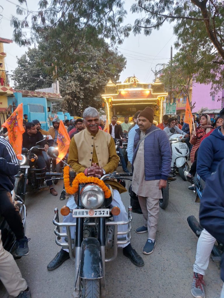 सैकड़ों की संख्या में मोटरसाइकिलों एवं कारों में लोग रथ के आगे आगे हाथ पर भगवा झंडा लेकर जय श्री राम, भारत माता की जय, वन्दे मातरम, अयोध्या तो झांकी है काशी मथुरा बाकी है आदि के नारे लगा रहे थे। जिसमें काफी संख्या में महिलाएं भी उपस्थित थी। रथ का स्वागत पूजन के बाद रथ के नेतृत्वकर्ता महर्षि शक्ति शांदानंद जी महाराज जी का प्रवचन हुआ अपने प्रवचन में उन्होंने कहा कि भगवान श्रीराम जी त्रेता युग में जब 14 वर्ष का वनवास काटकर तथा लंका विजय होकर लौटे तो उन्होंने दिग्विजय रथयात्रा निकाली थी।