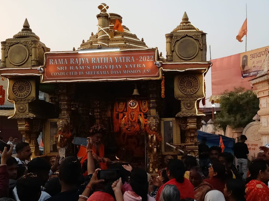 इस दिव्य दिग्विजय रथयात्रा मे रथ पर श्री रामचंद्र माता सीता जी के साथ ,श्री राम जन्मभूमि का विराट भव्य मंदिर का प्रारूप एवं श्री राम लला का अखंड राम ज्योति विद्यमान है। जो शहर के विभिन्न मार्गो से होकर गुजरेगी इस रथयात्रा में अयोध्या जी के कई साधु संत महंत भी सम्मिलित हैं।