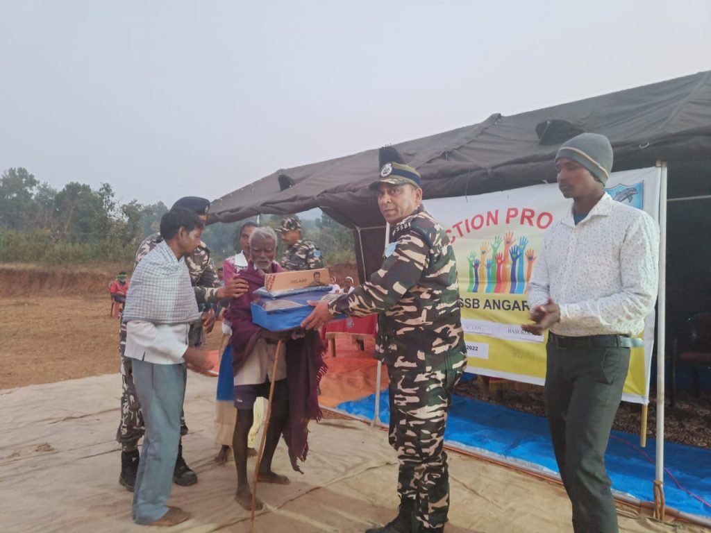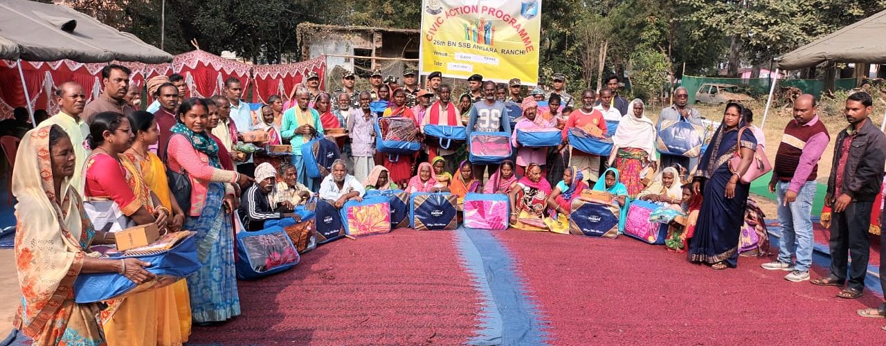रांची- 26वी वाहिनी सशस्त्र सीमा बल द्वारा नागरिक कल्याण कार्यक्रम के अंतर्गत 30 दिवसीय कंप्यूटर प्रशिक्षण कार्यक्रम का उद्घाटन पिछले सप्ताह दिनांक 23/11/2022 से वाहिनी की विभिन्न समवायों में चलाया जा रहा है। इसी कड़ी को आगे बढ़ाते हुए नक्सल प्रभावित क्षेत्रों में रह रहे लोगों के सामाजिक व आर्थिक उत्थान हेतु एस.एस.बी. कंपनी तमाड़ व बासुकोचा में नागरिक कल्याण कार्यक्रम के अंतर्गत दिनांक 28.11. 2022 को 200 से भी ज्यादा गरीब और जरूरतमंद ग्रामीणों को कंबल, साड़ी व चप्पलों का वितरण किया गया।