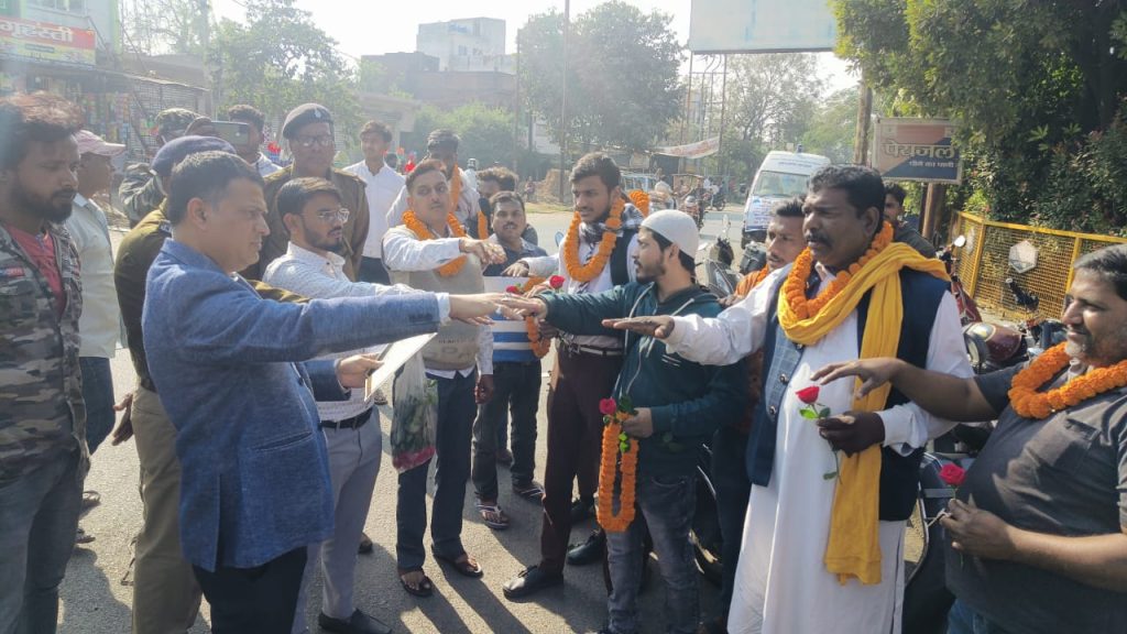 इधर डीसी के निर्देश पर ही डीटीओ ने पहले चरण में शहर में अभियान चलाकर वैसे लोगो को माला पहनाया, और गुलाब फूल देकर लोगो को नियम के साथ गाड़ी ड्राइविंग करने का अपील किया। इस दौरान एसपी कोठी के पास अभियान चलाया गया, और बगैर हेलमेट के दो पहिया वाहन चलाने वाले चालकों में महिलाओ के साथ कई पुरुष चालकों के साथ कई स्टूडेंट को माला पहनाया गया, और शपथ दिलाया गया की वो अब लापरवाही में गाड़ी नही चलाएंगे।