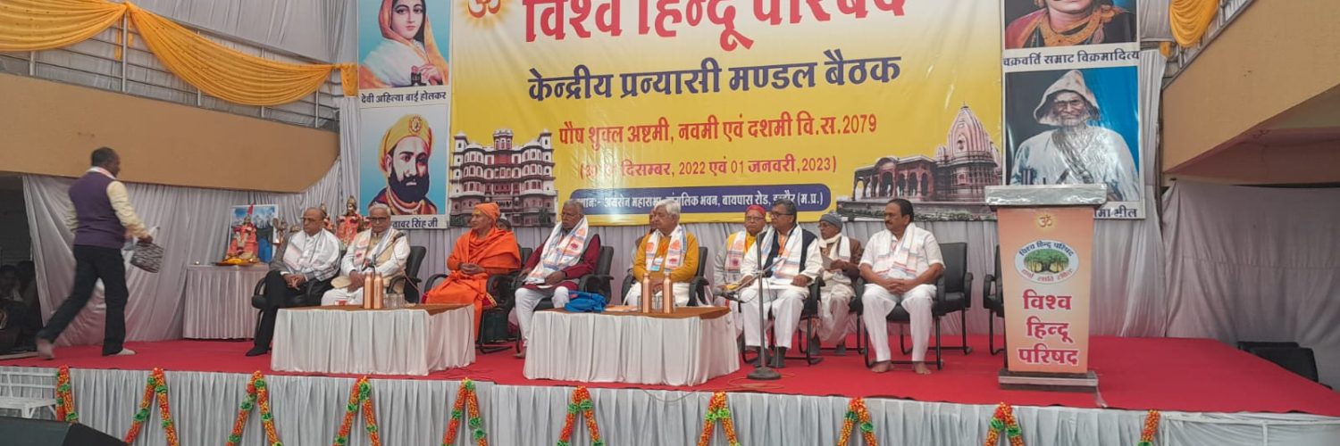 रांची: विश्व हिंदू परिषद की त्रिदिवसीय केंद्रीय प्रन्यासी मंडल की बैठक इंदौर, मध्य प्रदेश के अग्रसेन महासभा 30 दिसंबर 2022 को एक बैठक का वैदिक मंत्रों एवं दीप प्रज्वलन के साथ उद्घाटन किया गया। कार्यक्रम में पुरे देश से आए प्रतिनिधियों का स्वागत बाजे-गाजे एवम पुष्प वर्षा कर अंग वस्त्र प्रदान कर स्वागत किया गया।