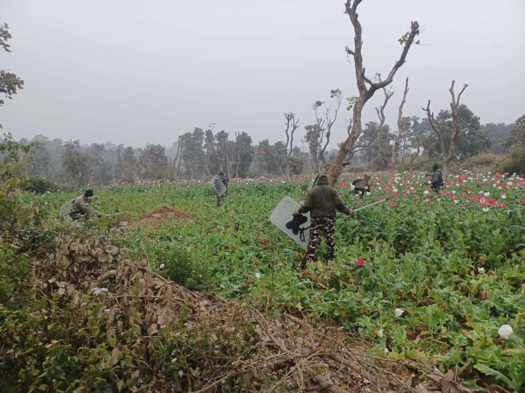 रांची: रांची और खूंटी जिलों में तैनात 26वी वाहिनी सशस्त्र सीमा बल की ‘सी’और ‘डी’ समवाय ने 17 जनवरी को साइको और तमाड़ पुलिस के साथ 33 एकड़ अवैध पोस्ता की खेती को नष्ट कर दिया | सशस्त्र सीमा बल की विभिन्न समवायों और स्थानीय पुलिस पिछले कई दिनों से रांची और खूंटी जिलों के कई गांवों और आस पास के जंगल क्षेत्रोँ में संयुक्त अभियान द्वारा अवैध पोस्ता और गांजे के फसल को नष्ट करने का अभियान चलाया जा रहा हैं|