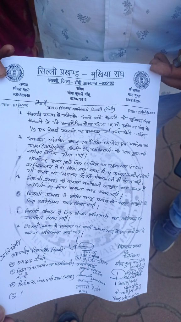 सात सूत्री मांगों को लेकर सिल्ली मुखिया संघ ने बीडीओ को सौंपा ज्ञापन
