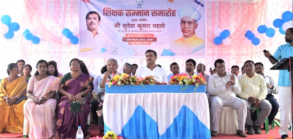 सिल्ली/ रांची: सिल्ली के विधायक और पूर्व उपमुख्यमंत्री सुदेश कुमार महतो ने कहा है कि जीवन में शिक्षकों के महत्व को शब्दों में बयां नहीं किया जा सकता है। हमारे जीवन को उचित मार्गदर्शन देकर सही दिशा दिखाने की सबसे बड़ी जिम्मेदारी शिक्षक की होती है। शिक्षक एक अनमोल उपहार हैं। वे विद्यार्थियों के जीवन को अपने ज्ञान, धैर्य, प्यार और मार्गदर्शन से मजबूत आकार देते हैं। और सफलता की ओर ले जाते हैं।