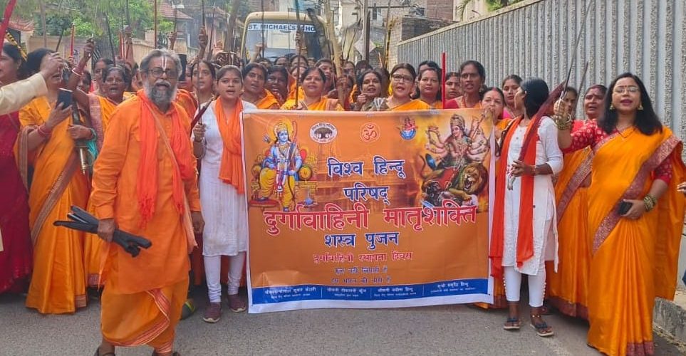 उक्त विचार विहिप के झारखंड- बिहार के क्षेत्र मंत्री वीरेन्द्र विमल ने शस्त्र पूजन कार्यक्रम में माता बहनों को संबोधित करते हुये व्यक्त किया। दुर्गावाहिनी का शस्त्र पूजन कार्यक्रम आज गुरुगोविन्द सिंह नगर के देवी मंडप पथ स्थित हेसल अखाड़ा श्री हनुमान मंदिर में आयोजित था। दो सौ की संख्या में हेेसल, सुखदेव नगर, इन्द्रपुरी, पंड्रा, हेहल, बजरा, कमड़े, लक्ष्मीनगर, दयालनगर आदि स्थानों से बड़काटोली हेसल अखाड़ा में एकत्र महिलाओं ने तीर धनुष, तलवार सहित सभी शस्त्रास्त्रों का पूजन कराया। दुर्गा चालीसा तथा हनुमान चालीसा पाठ एवं आरती के बाद धर्म सभा प्रारम्भ हुई। दुर्गावाहिनी की महानगर सह संयोजिका समृद्धि कुमारी तथा टोली सदस्य रीना तिर्की, मातृशक्ति की नीतू सिंह, शकुन देवी, आदि के उद्बोधन के बाद मुख्य वक्ता वीरेन्द्र विमल ने विचार रखा।