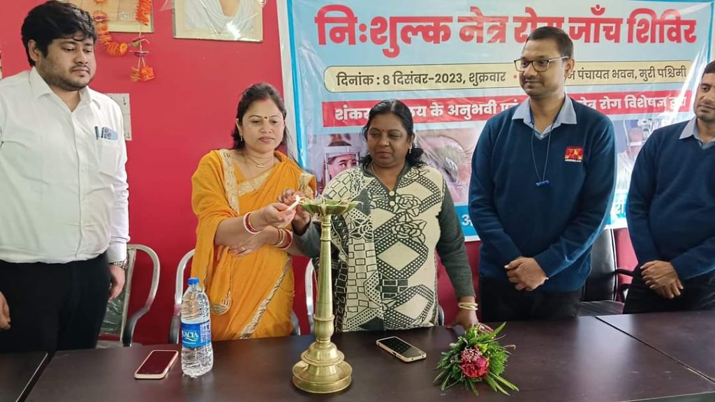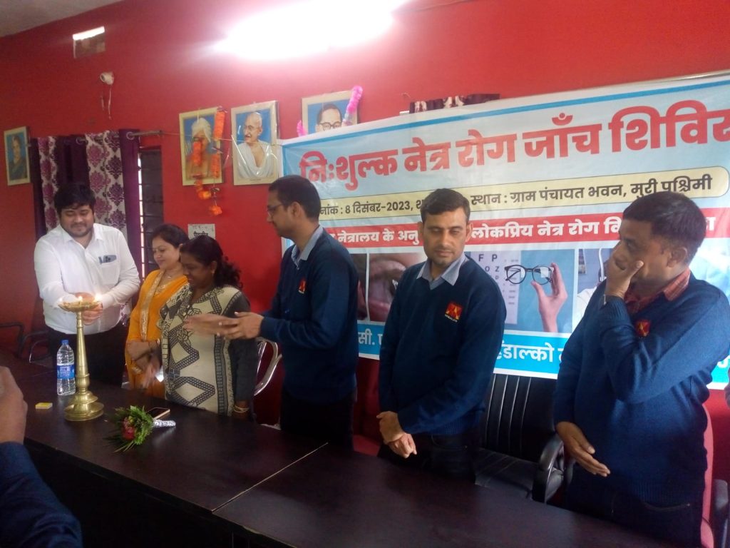 मुरी : हिंडालको सीएसआर विभाग द्वारा आयोजित मुरी पश्चिम पंचायत भवन में निशुल्क नेत्र रोग जांच शिविर का विधिवत उद्घाटन बीडीओ रेणु बाला , जिला परिषद लक्ष्मी देवी, हिंडाल्को के एचआर विभाग के हेड अरुण राय , सीएसआर अनिल सिंह, अभिषेक प्रताप सिंह, श्याम कुमार गुप्ता संदीप कुमार ने संयुक्त रूप से दीप प्रज्वलित कर किया।