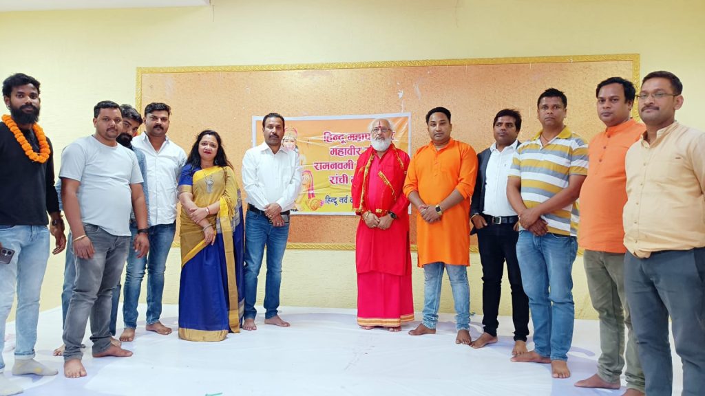 रांची: कृष्णा पैलेस बैंक्वेट हॉल, लालपुर.रांची में हिंदू महापरिवार की एक विशेष बैठक का आयोजन किया गया। बैठक की अध्यक्षता प्रधान संरक्षक स्वामी दिव्यानंद जी महाराज ने की साथ राष्ट्रीय अध्यक्ष – राजेश आयान, प्रदेश अध्यक्ष सौमेन दत्ता ने दिया। रामनवमी पूजा को मनाने को लेकर बैठक आयोजित की गयी।