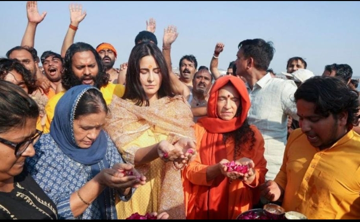 अस्था में डूबीं कैटरीना कैफ, चिदानंद सरस्वती के साथ वितरित किया प्रसाद
