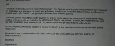 अपराधताजा खबरेदेशप्रशासनराजनीति ईडी और डीजीपी से झारखंड हाईकोर्ट के वरिष्ठ अधिवक्ता ने मांगी सुरक्षा, अनहोनी होने पर मुख्यमंत्री हेमंत सोरेन समेत 3 लोग होंगे जिम्मेदार! AdminDecember 4, 2022